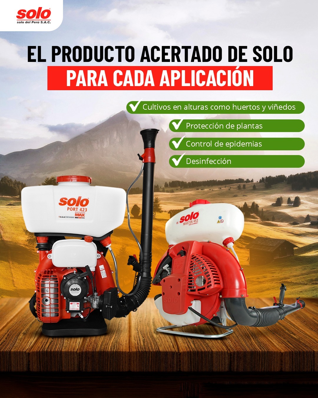 Motobombas, Motoguadaña, Motofumigadora, Motosierras, Motores Multipropósitos, Generadores de Corrientes, Compresoras de aire, Atomizadores, Pulverizadores, Termonebulizador, Generador de Niebla, Termonebulizador, Dispensador de Granos.